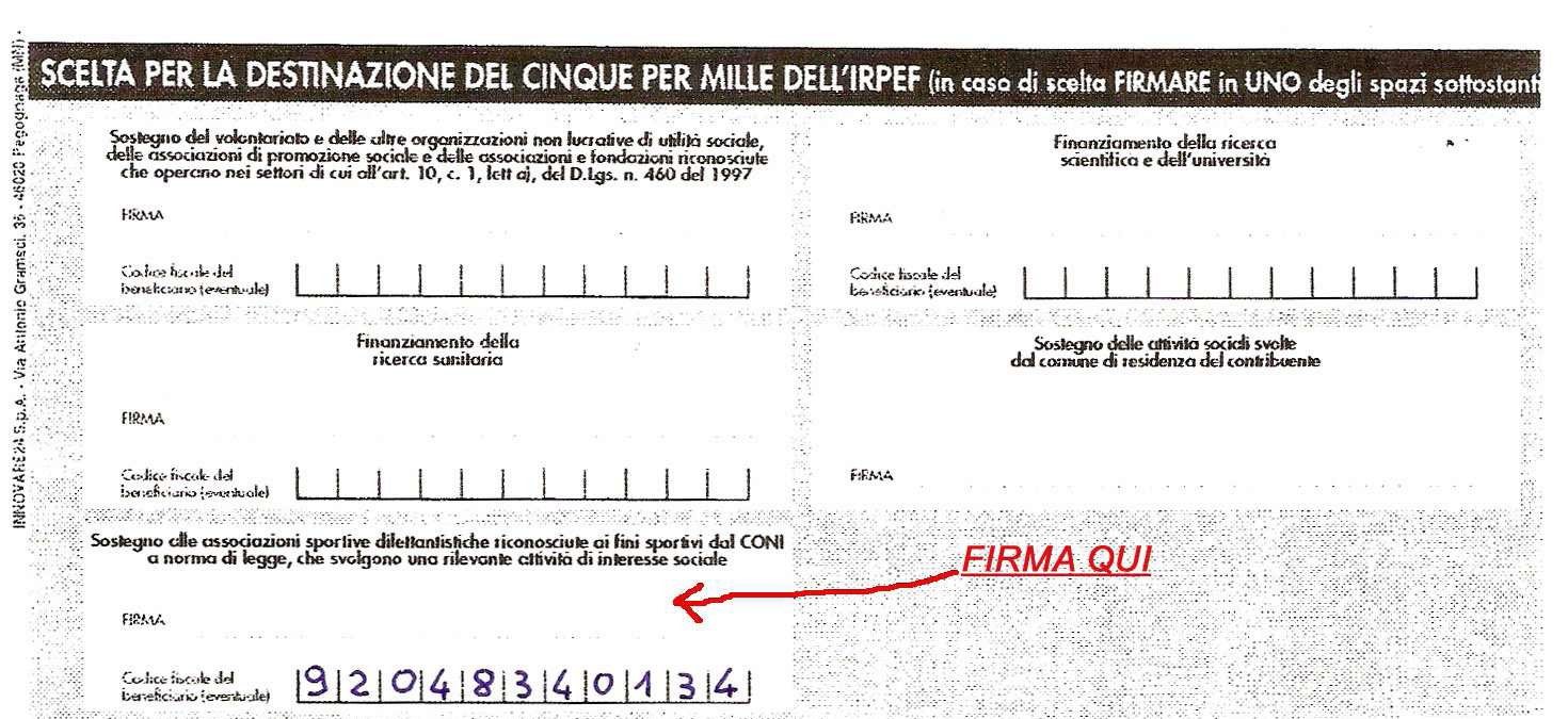 Potete esprimere la vostra scelta, firmando nel riquadro della dichiarazione dei redditi, 730 o modello Unico, destinato al “Sostegno delle Associazioni Sportive Dilettantistiche riconosciute ai fini sportivi dal Coni a norma di legge che svolgono una rilevante attività di interesse sociale” e indicando nello spazio sottostante il codice fiscale della Pol. Rovinata